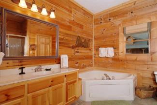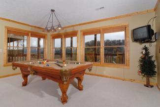 is a 4 bedroom, 2 bath cabin located in the Laughing Pines area just 3.4 miles from traffic light #3 in Pigeon Forge. Features include a 4 person hot tub on the lower level deck, wireless high-speed internet, a wood-burning fireplace (Firewood not Supplied) , a regulation size pool table in the lower level game room and a jacuzzi whirlpool tub in the master bathroom. The living room features a flat screen TV with BlueRay/DVD player. "A Great Escape" sleeps up to 10 guests, with a King bed in the master bedroom, and 2 queen beds, a twin bunkbed and a queen sleeper sofa on the lower level. This cabin has it all including access to a stocked fishing pond. Come enjoy this 4 bedroom cabin in the Smokies. Sleeps 10, Non smoking Please.