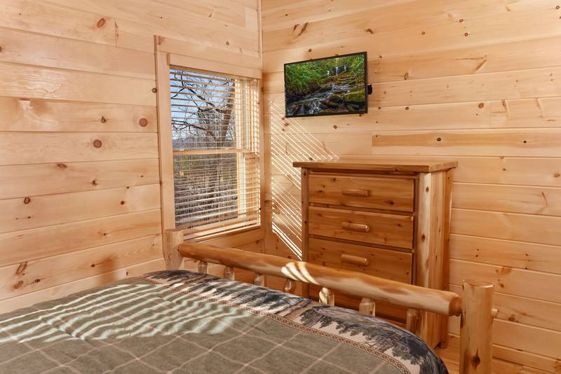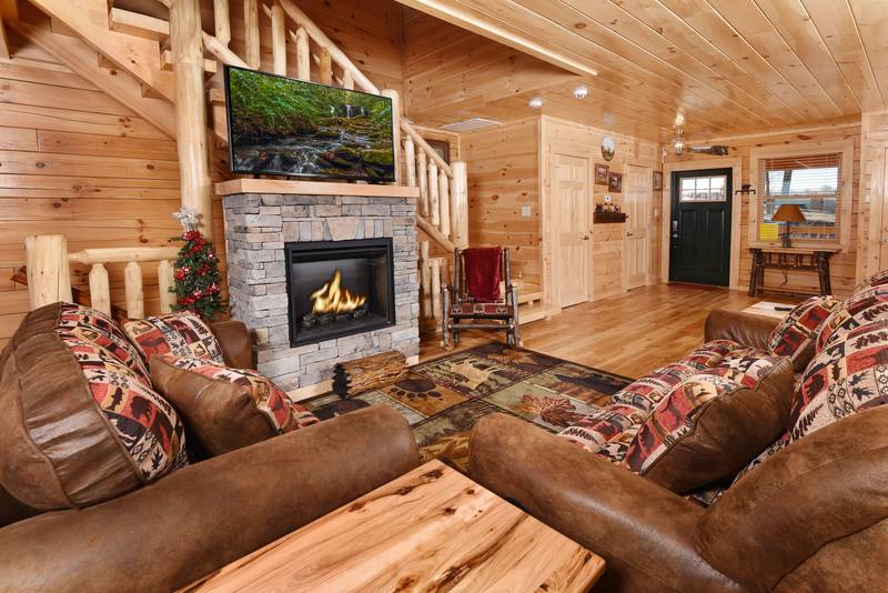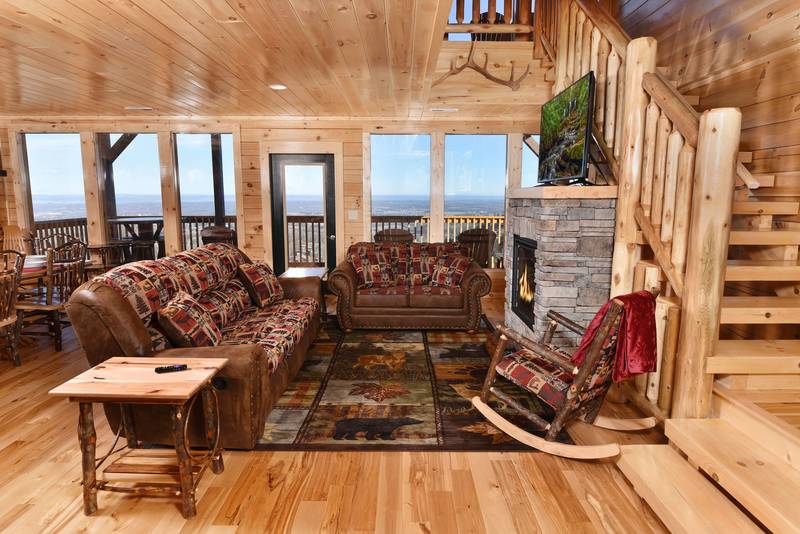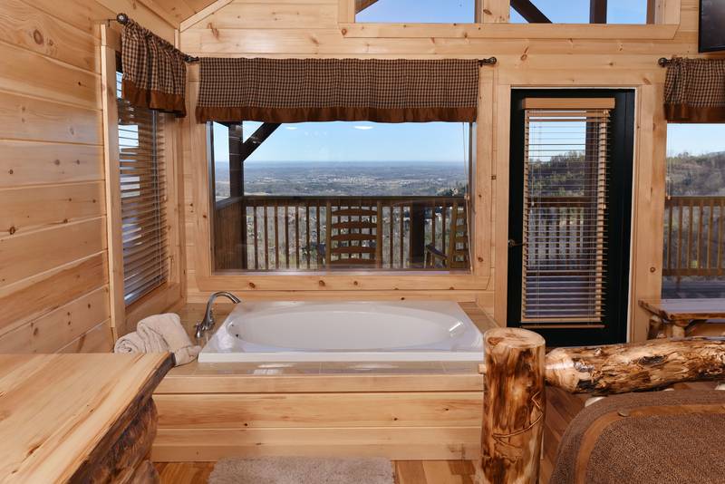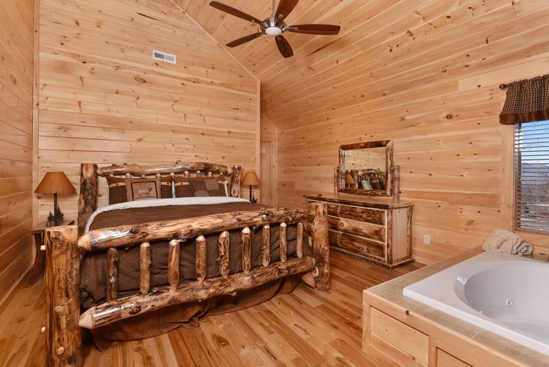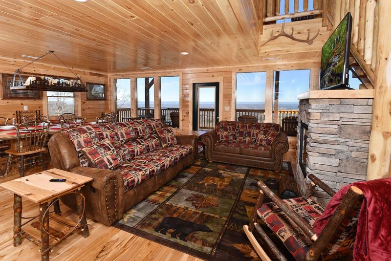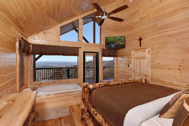 Everlasting View Unit 903 has the Best Views in Pigeon Forge Period!! You will be happy to have this reserved for your next luxury Pigeon Forge Vacation. When you enter Everlasting View you are welcomed by the cozy cabin decor. The main level of the cabin features a fully equipped kitchen and large dining area for the entire group. The living room features a year round electric fireplace, flat screen television, and sleeper sofa for additional sleeping. There is a main level deck area perfect for enjoying your morning coffee admiring the views. If you listen closely you can even hear the Dollywood Train. The upper level of Everlasting Views has a Master Suite fit for a King! There is a King Size Bed for comfort and a whirlpool overlooking the Smoky Mountain Views. The Master Suite Features a large Bathroom with a Two Person Walk In Shower. There is an additional bedroom on the Upper Level that features a Queen Size Bed, Flat Screen Television, and a bathroom with Walk In Shower.