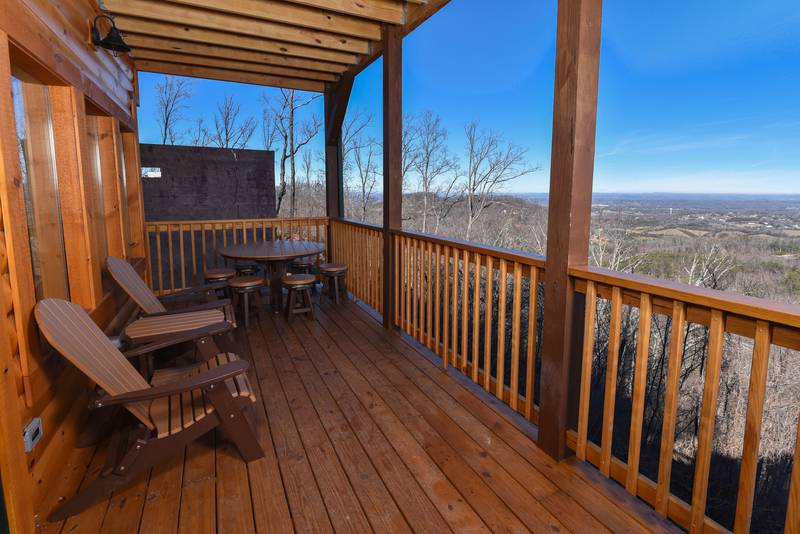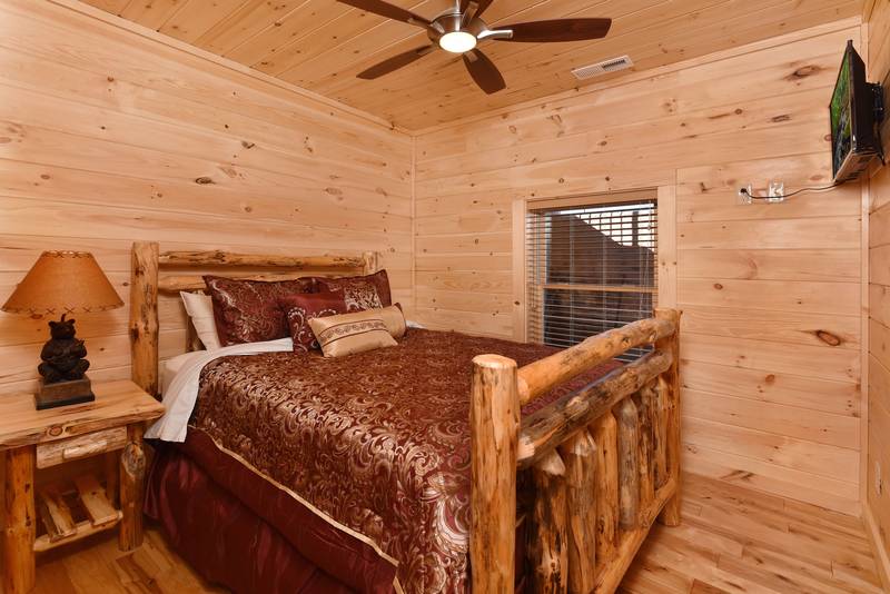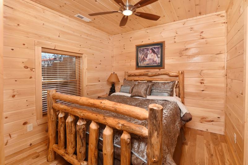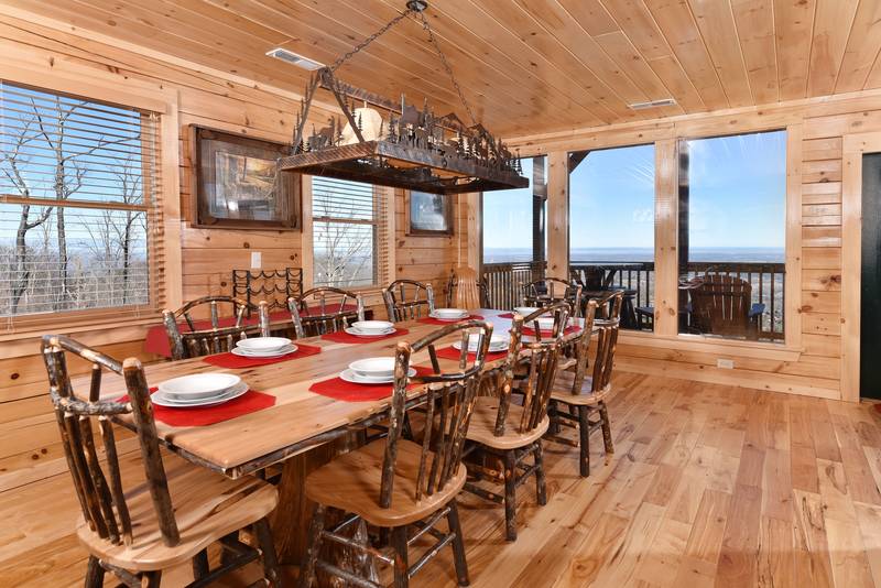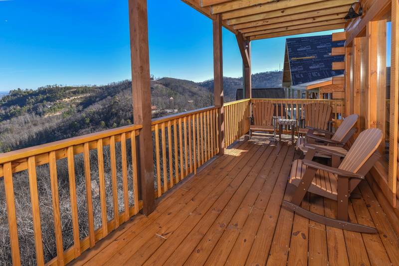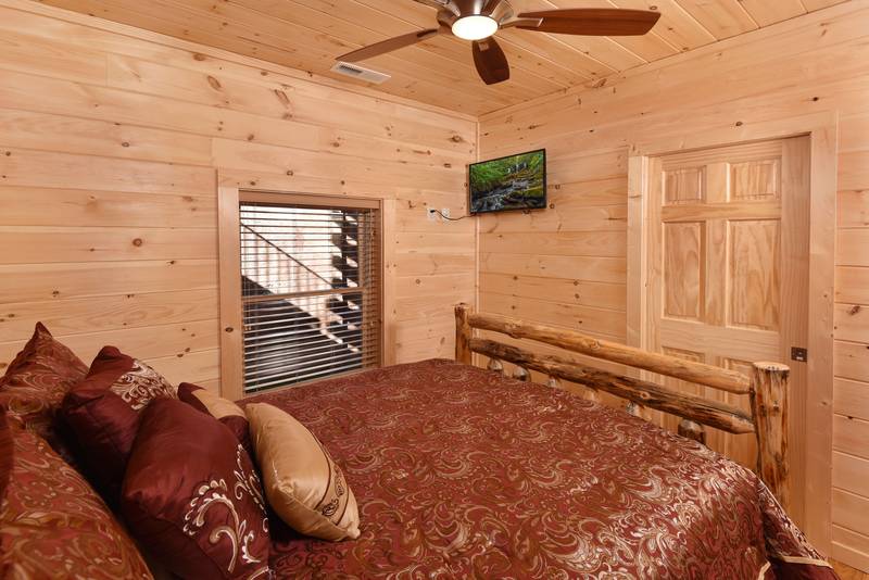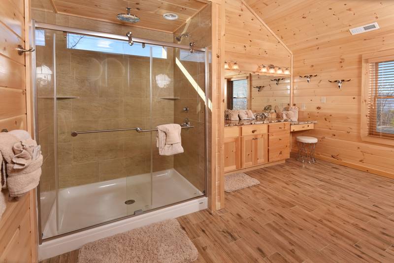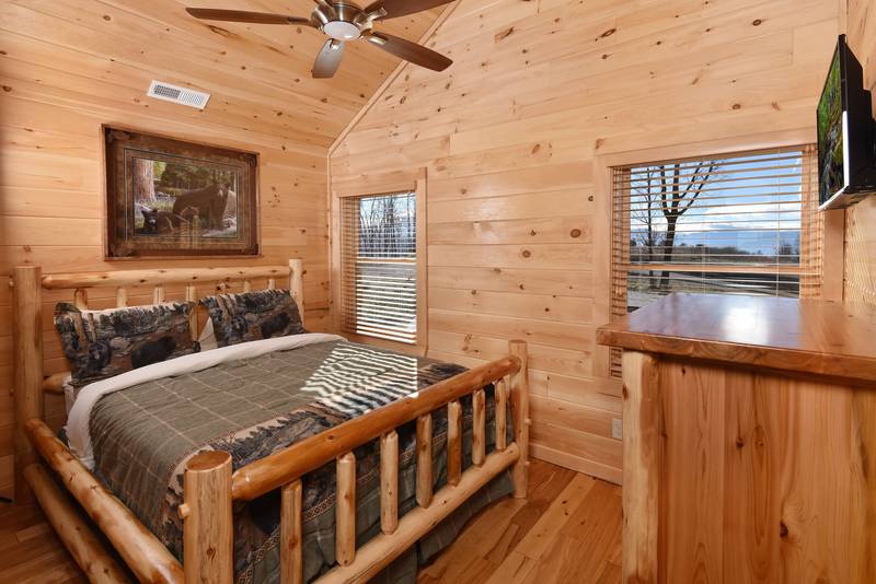 Everlasting View Unit 903 has the Best Views in Pigeon Forge Period!! You will be happy to have this reserved for your next luxury Pigeon Forge Vacation. When you enter Everlasting View you are welcomed by the cozy cabin decor. The main level of the cabin features a fully equipped kitchen and large dining area for the entire group. The living room features a year round electric fireplace, flat screen television, and sleeper sofa for additional sleeping. There is a main level deck area perfect for enjoying your morning coffee admiring the views. If you listen closely you can even hear the Dollywood Train. The upper level of Everlasting Views has a Master Suite fit for a King! There is a King Size Bed for comfort and a whirlpool overlooking the Smoky Mountain Views. The Master Suite Features a large Bathroom with a Two Person Walk In Shower. There is an additional bedroom on the Upper Level that features a Queen Size Bed, Flat Screen Television, and a bathroom with Walk In Shower.