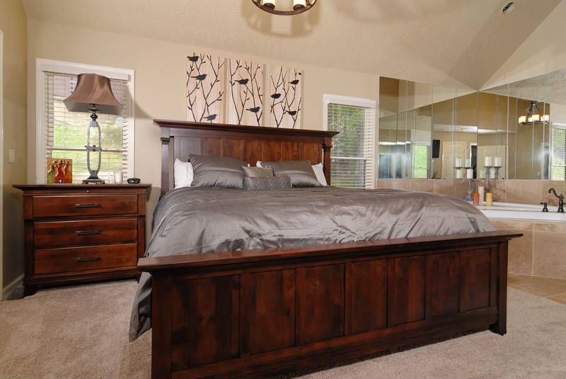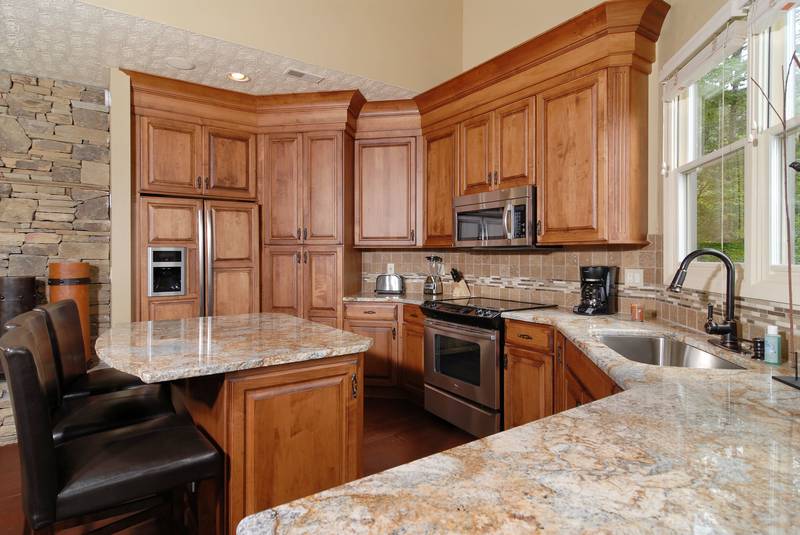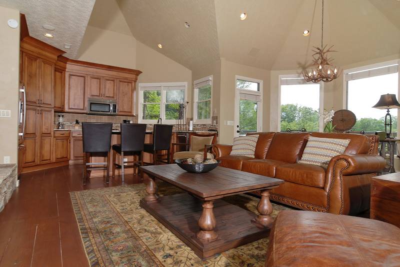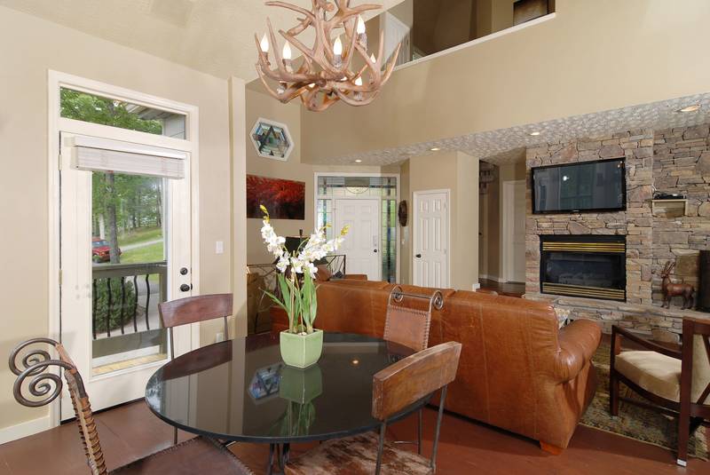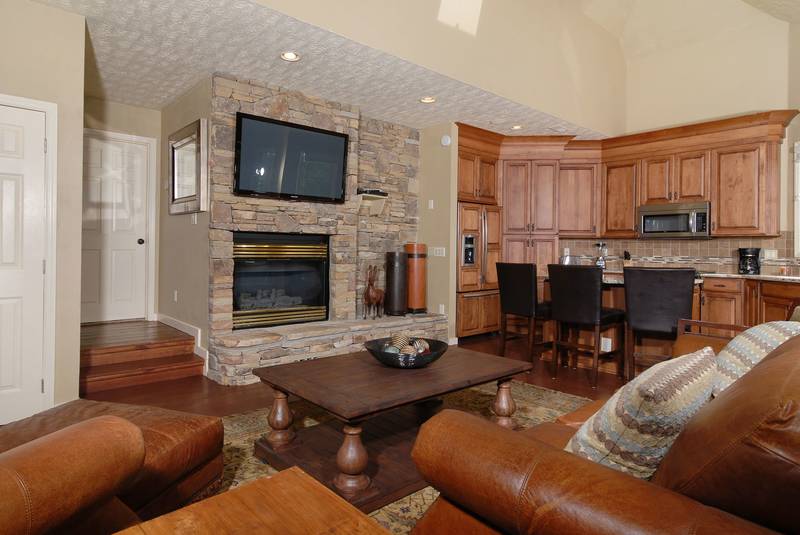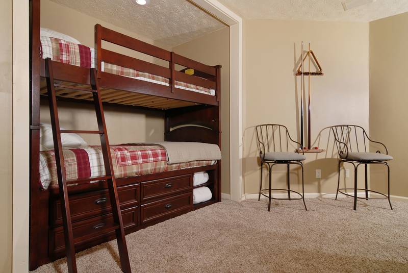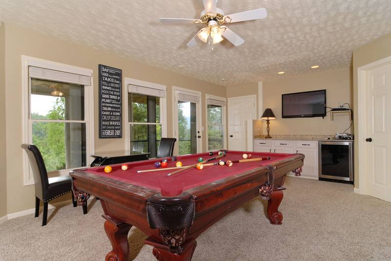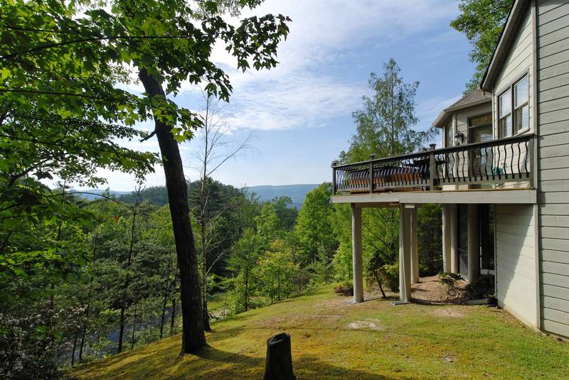 BEAR BOTTOMS - Shagbark - Ultra,Luxury Custom, built chalet-family vacation Chalet with great mountain views. Bear Bottoms is a beautiful, professionally-decorated chalet that will satisfy your vacation desires in a very special way. There is 1 king bed in a master suite that features a whirl pool and a walk-in shower.There is a Queen bed in a bedroom. There is a large beautiful kitchen that would be any chefs dreams overlooking the large living room with a flat screen tv. Downstairs there is a large game room that has a wet bar large, a sitting area and a built in bunk bed set. In the Summer, you have outdoor swimming pool and tennis court access just a short drive away. Bear Bottoms - Shagbark Chalet 99 sleeps up to 6. NO SMOKING, NO PETS PLEASE SCREENED IN BACK PORCH
