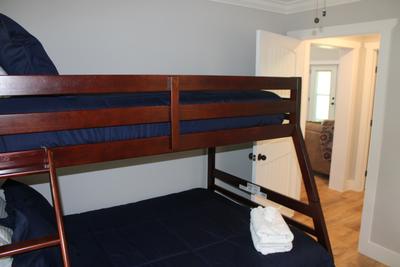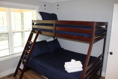 Inside, you’ll find a fully furnished kitchen equipped for everything from quick breakfasts to full family meals, along with a comfortable full-size living room that invites you to unwind after a day of exploring. The sleeping arrangements include a luxurious king bedroom, a cozy queen room, and a fun twin-over-full bunk room—perfect for kids or extra guests.