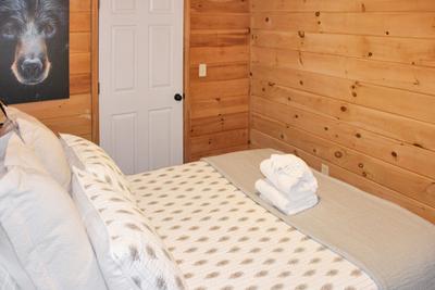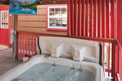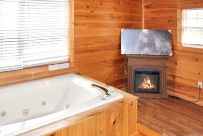 Gatlinburg cabin convenient to downtown, cabin 995 Ole Red, is the perfect cabin for the family looking to escape to the Great Smoky Mountains. This beautiful cabin is nestled just of highway 321 in Gatlinburg and just minutes away from all the excitement that the Great Smoky Mountains has to offer. As you enter this beautiful property you come into a fully furnished kitchen and the living room that comes with a stone encased seasonal gas fireplace and a 58-inch TV. Just off the living room is the first bedroom/game room that is perfect escape for the kids. This room offers a twin over twin bunk bed, cocktail style multi-cade game, a 50-inch TV, and a pool table. Just off the kitchen on this level is the second bedroom that has a queen size bed, and both bedrooms on the main level have access the first of two bathrooms. Upstairs in the loft area there is a futon with a 32-inch TV. The master bedroom is located upstairs and is an oversized room with a king size bed, en suite Jacuzzi, a year-round electric fireplace, a 65-inch TV, and a private balcony. The amenities are not just on the inside of the cabin; the outside has plenty of things for the family to enjoy. There is a large front yard with a fire pit with seating for 6 where you can sit back and take in the splendor of the Smokies, and a horse shoe pit where the family can gather battle out to see who is the best. There is also a large front deck with a picnic table, and the back deck offers ramped entry into the cabin, and a hot tub with a 44-inch TV where you can soak your worries away and stream your favorite team or watch your favorite show. This cabin has everything you and your family needs to create Smoky Mountain memories that will last a lifetime. Dogs are welcome but must be under 35 lbs and additional fees apply and must follow Fireside Chalets pet policies. 4 Car Parking. No Smoking. WIFI included. Sleeps 6.